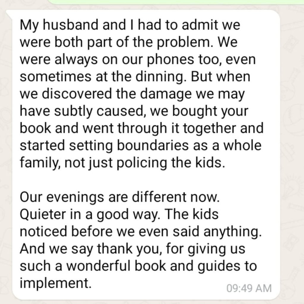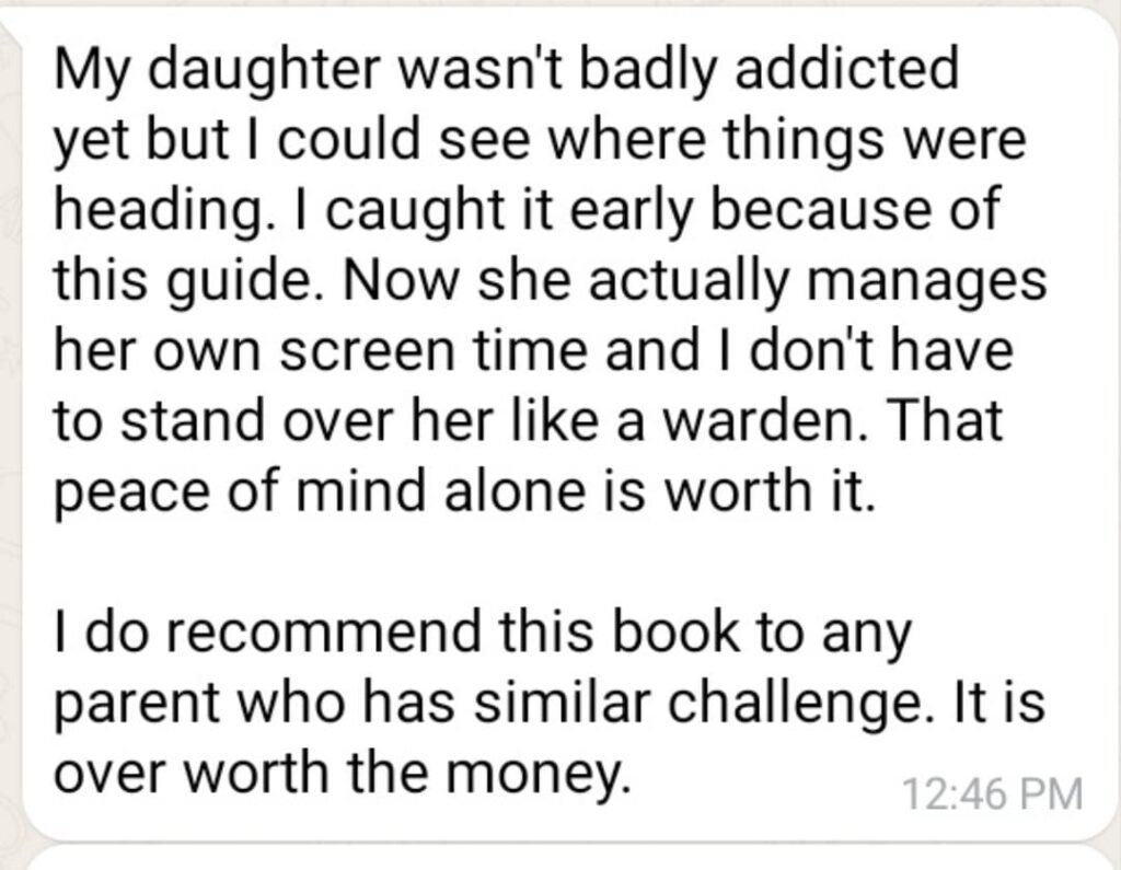 My child is already addicted. Is it too late? It’s never too late. This book includes specific strategies for breaking existing screen habits and rebuilding healthy routines no matter how deep the problem feels right now.
