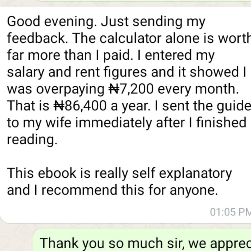 Your landlord’s handwritten receipt from a ₦200 booklet will not pass the NRS review. This template provides a professional, NRS-compliant rent receipt with all required data points, your name as it appears on your payslip, the tenancy period, the landlord’s TIN field, and a signature block. You fill in your details, hand it to your landlord for a signature, and your Rent Relief claim is bulletproof. Includes the exact WhatsApp message to send to your landlord today, so it is done before the deadline.